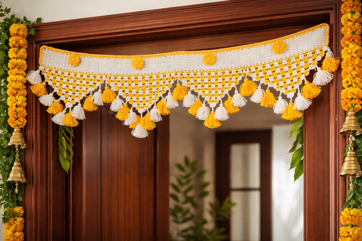 Make your entrance welcoming and festive with this elegant crochet toran – a beautiful blend of tradition and style.