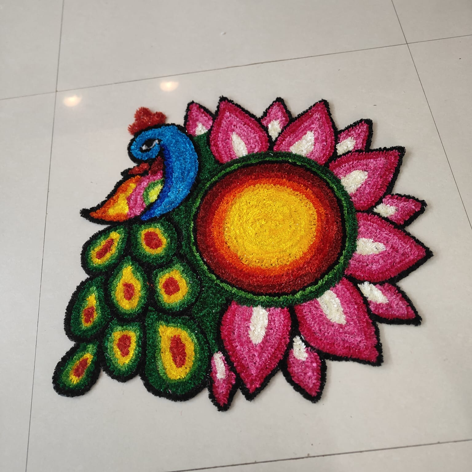 2.5 feet peacock design using woolen ready rangoli