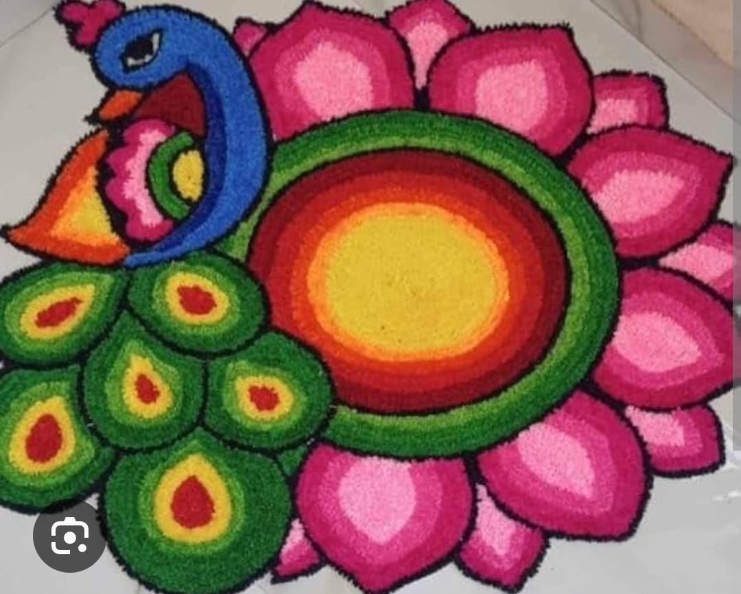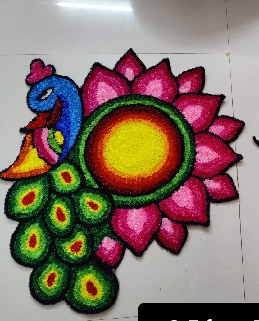 Peacock Design using woolen ready rangoli